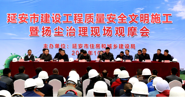 為進(jìn)一步強(qiáng)化質(zhì)量安全生產(chǎn)意識(shí),深化文明工地創(chuàng)建活動(dòng),提高建設(shè)工程質(zhì)量安全管理水平,11月1日,延安市住建局組織召開了建筑工程質(zhì)量安全文明施工暨揚(yáng)塵治理現(xiàn)場觀摩會(huì)。市考核辦、文明辦、應(yīng)急管理局、環(huán)保局、新區(qū)管委會(huì)等13家負(fù)責(zé)同志出席會(huì)議。各縣區(qū)住建部門及市直施工企業(yè)、監(jiān)理單位負(fù)責(zé)同志共200余人參加了會(huì)議。