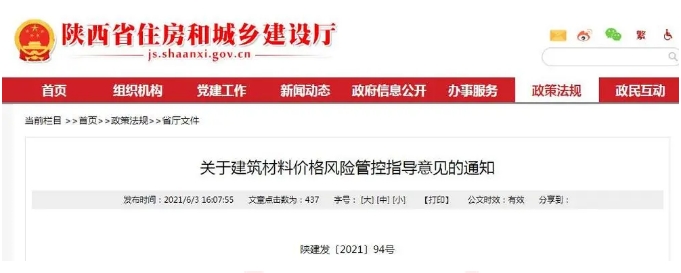| 建筑材料價格風險如何管控,陜西省住建廳發(fā)布指導意見 |