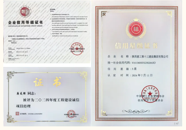 近年來,陜建十三建集團(tuán)高度重視企業(yè)信用建設(shè),堅(jiān)持把誠信經(jīng)營作為企業(yè)高質(zhì)量發(fā)展的基石,秉承“敬業(yè)守信、勇?lián)?zé)任、建造精品、追求卓越”的企業(yè)精神,在堅(jiān)定屬地市場的同時(shí)持續(xù)開拓域外市場,不斷壯大主業(yè)規(guī)模,樹立良好的口碑和品牌形象;踐行“四新”戰(zhàn)略,拓展新領(lǐng)域、新業(yè)態(tài),助推企業(yè)轉(zhuǎn)型升級和高質(zhì)量發(fā)展;加強(qiáng)工程項(xiàng)目精細(xì)化管理,守好安全底線,嚴(yán)把質(zhì)量關(guān),推動(dòng)項(xiàng)目實(shí)現(xiàn)優(yōu)質(zhì)履約;提升內(nèi)控工作水平,強(qiáng)化制度建設(shè)與風(fēng)險(xiǎn)防控,保障企業(yè)規(guī)范平穩(wěn)運(yùn)行。集團(tuán)先后榮獲延安市建筑業(yè)AAA級信用企業(yè)、陜西省信用協(xié)會(huì)信用建設(shè)先進(jìn)單位。